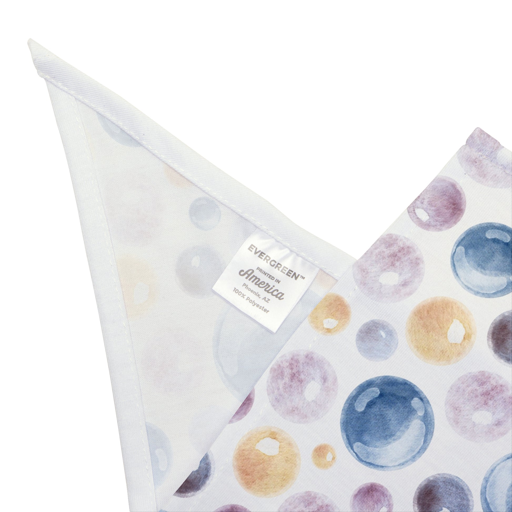 - All-over, one-sided print with watercolor bubble design